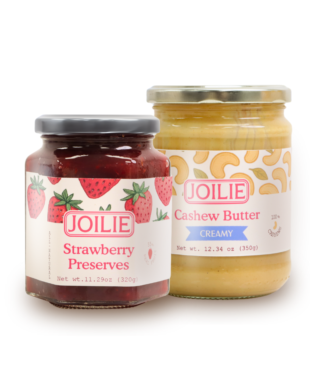 Breakfast, the Joilie way — simple, cozy, and made to share. From creamy Irish butter to fruit preserves and pure nut butters, every jar brings a little joy to the table.
